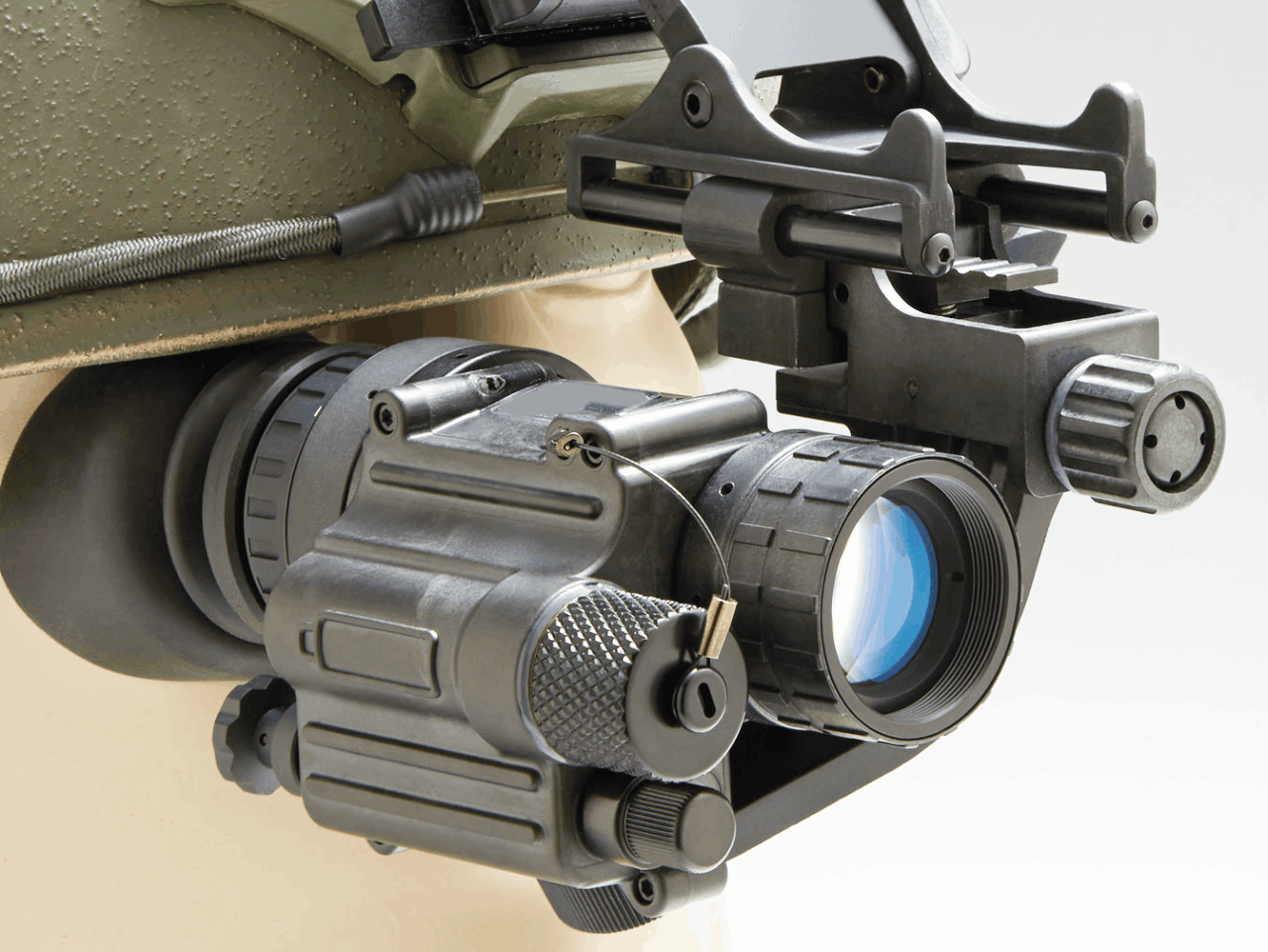 The PVS-14 provides controls for a built‐in short-range IR illuminator, automatic high light cut-off sensor, and “flip‐up” OFF magnetic feature switch. This system has durable, robust, and lightweight housing construction and provides the best balance between ergonomics and performance in the industry.